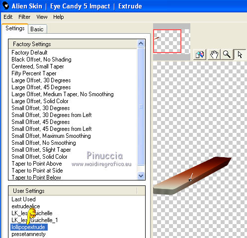 Seleziona il preset lollipopextrude e ok.