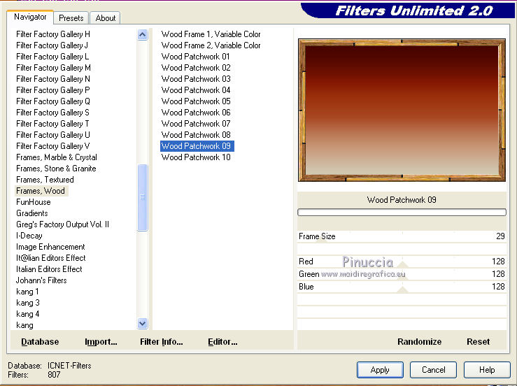 Effetti>Plugins>Filters Unlimited - Frames, Wood - Woord Patchwork.