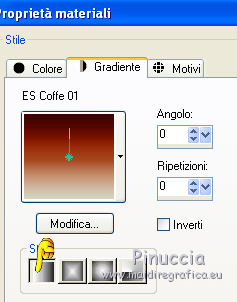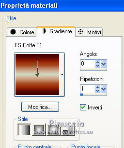 e seleziona il gradiente ES Coffee01, stile Lineare, con i seguenti settaggi (il colore chiaro deve trovarsi in basso).