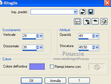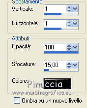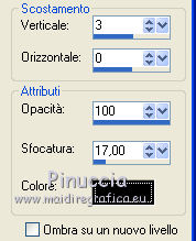 Ripeti Effetti>Effetti 3D>Sfalsa ombra, con il colore nero e i seguenti settaggi.