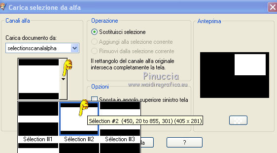 Apri "sélectionscanalalpha" e minimizzala. L'immagine non è vuota, ma contiene le selezioni salvate sul canale alpha. Con il file minimizzato, le selezioni saranno disponibili quando ti serviranno.