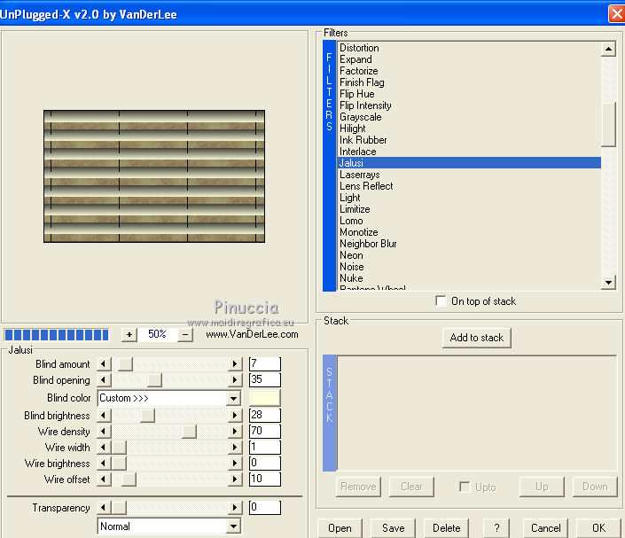 Effetti>Plugins>VanDerLee - Unplugged X - seleziona l'Effetto Jalusi, colore #ffffde: