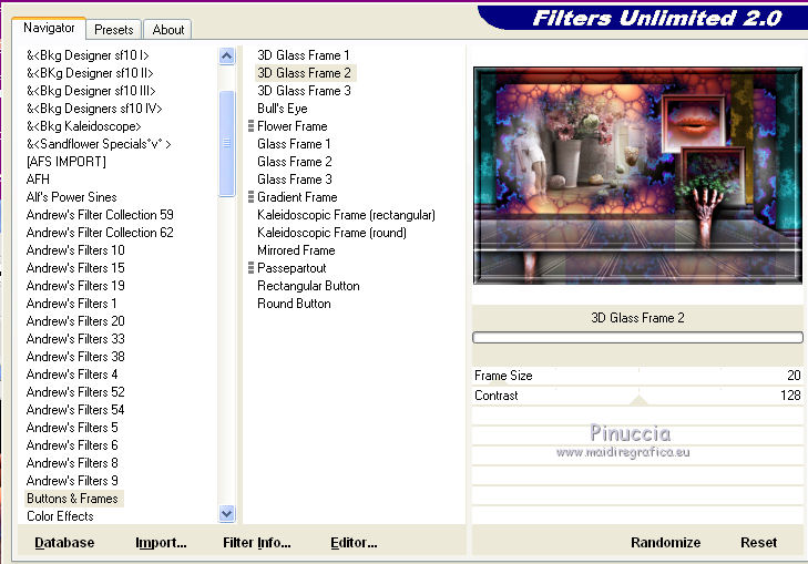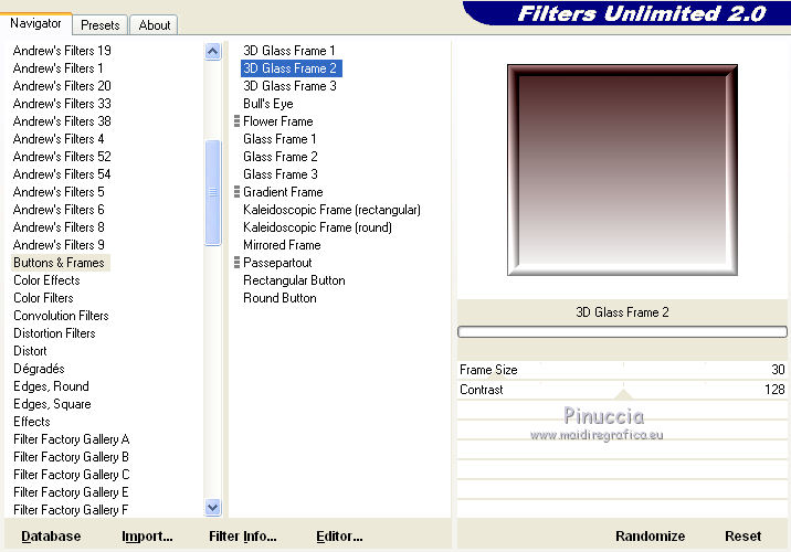 Effetti>Plugins>Filters Unlimited 2.0 - Buttons and Frames - 3D Glass frame 2: