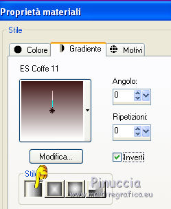 e seleziona il gradiente ES Coffee11, stile Lineare, con i seguenti settaggi (il colore chiaro deve trovarsi in basso).