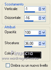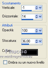 Di nuovo Effetti>Effetti 3D>Sfalsa ombra, con il colore nero e i seguenti settaggi.