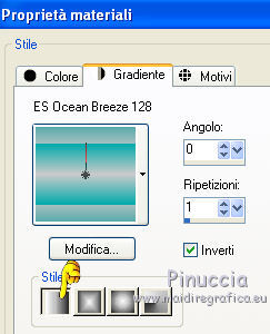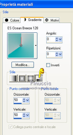 1. Passa il colore di primo piano a Gradiente, e seleziona il gradiente ES Ocean breeze128, con i seguenti settaggi.