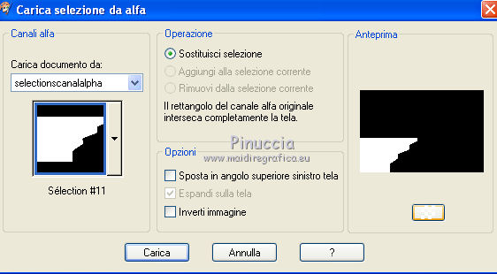 Apri "sélections_canal_alpha" e minimizzala. L'immagine non è vuota, ma contiene le selezioni salvate sul canale alpha. Con il file minimizzato, le selezioni saranno disponibili quando ti serviranno.