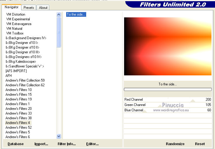 Effetti>Plugins>Filters Unlimited - Andrew's Filter collection 4 - To the side, con i settaggi standard.