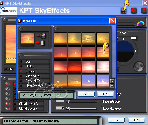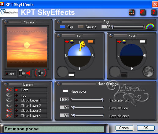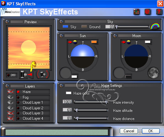 Ritornando alla finestra principale del filtro, clicca sul riflesso bianco del sole,