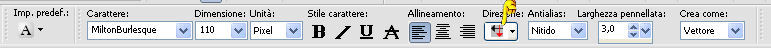 Attiva lo strumento Testo , font MiltonBurlesque, direzione verticale.