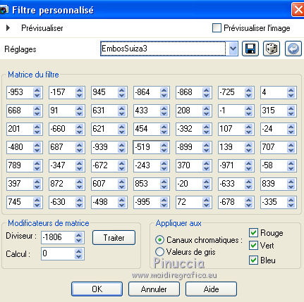 4. Effets>Filtre personnalisé - sélectionner le preset EmbosSuiza3 et ok.