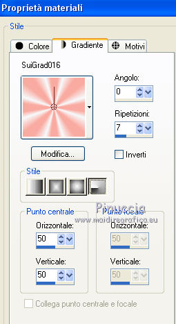 Passa il colore di primo piano a Gradiente, e seleziona il gradiente SuiGrad016, stile Radiale.