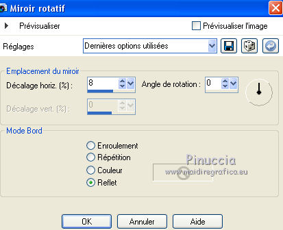 Effets>Effets de réflexion>Miroir rotatif, par défaut.
