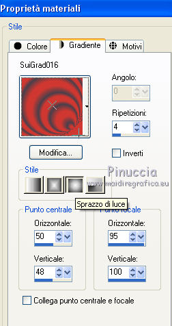 Passa il colore di primo piano a Gradiente e seleziona il gradiente SuiGrad016, stile Sprazzo di luce.