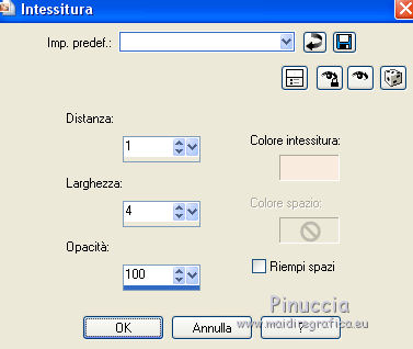 17. Effetti>Effetti di trama>Intessitura, con i settaggi precedenti.