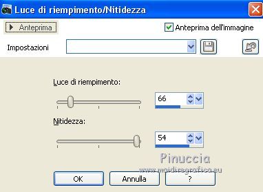 22. Regola>Luminosità e Contrasto>Luce di riempimento/Nitidezza, con i settaggi precedenti.