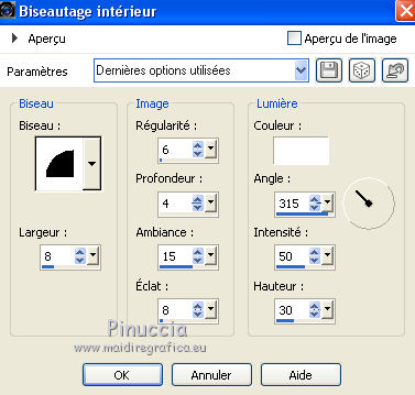 22. Effets>Effets 3D>Biseautage intérieur, comme précédemment.