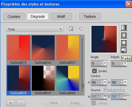 2. Placer en avant plan Dégradé et sélectionner le dégradé Suigrad018, style Radial.