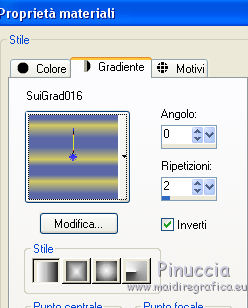 Passa il colore di primo piano a Gradiente, e seleziona il gradiente SuiGrad016, stile Lineare.