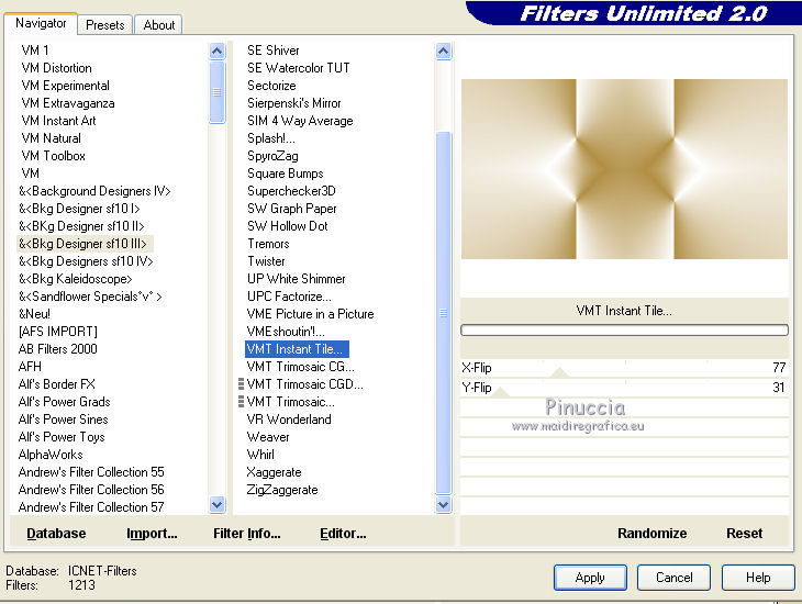3. Effetti>Plugins>Filters Unlimited 2.0 - &<Bkg Designer sf10III> - VMT Instant Tile