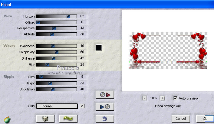 ricorda che questo filtro lavora con i lavori impostati nella paletta dei materiali, ma tiene in memoria il primo settaggio dall'apertura del programma.
