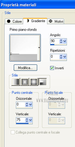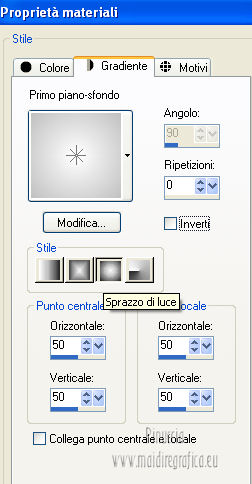 Passa il colore di primo piano a Gradiente, stile Radiale, con i seguenti settaggi.