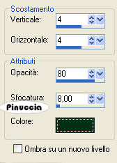 12. Effetti>Effetti 3D>Sfalsa ombra, con i seguenti settaggi, colore #003014.