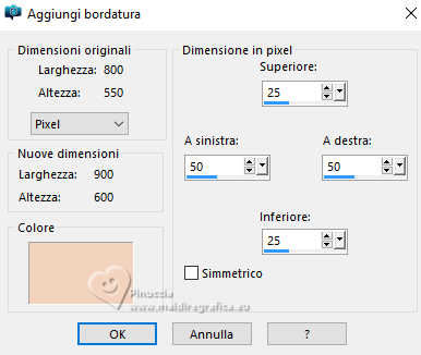 Immagine>Aggiungi bordatura, simmetriche non selezionato, colore di sfondo.