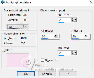 Immagine>Aggiungi bordatura, simmetriche non selezionato, colore di sfondo.