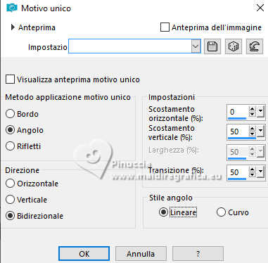 15. Effetti>Effetti di immagine>Motivo unico, Orizzontale selezionato.