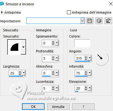 Effetti>Effetti 3D>Smusso a incasso, con i settaggi precedenti.