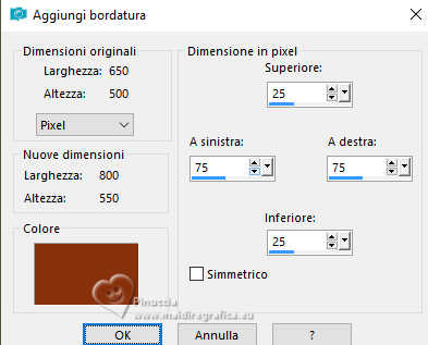 Immagine>Aggiungi bordatura, simmetriche non selezionato, colore di sfondo.