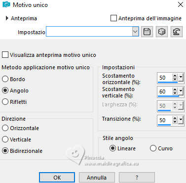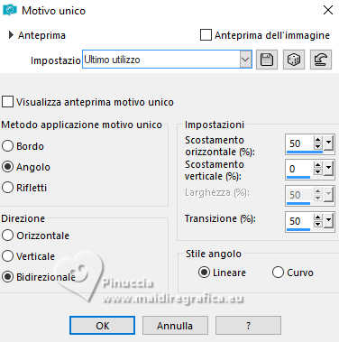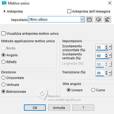 26. Effetti>Effetti di immagine>Motivo unico, con i settaggi precedenti, ma Bidirezionale selezionato.
