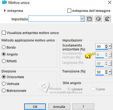 21. Effetti>Effetti di immagine>Motivo unico, con i settaggi precedenti, ma orizzontale selezionato.