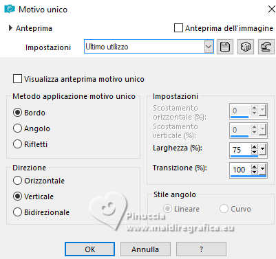 13. Effetti>Effetti di immagine>Motivo unico, con i settaggi precedenti.