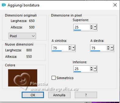 Immagine>Aggiungi bordatura, simmetriche non selezionato, colore di sfondo.