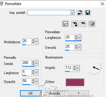 31. Effetti>Effetti tecniche di disegno>Pennellate, con i settaggi precedenti.