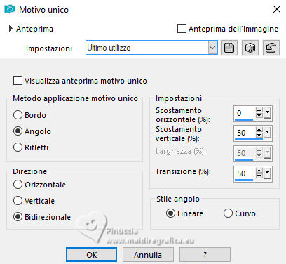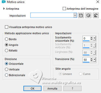 49. Effetti>Effetti di immagine>Motivo unico, con i settaggi precedenti, ma orizzontale selezionato.