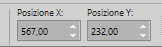 Imposta Posizione X: 567,00 e Posizione Y: 232,00.