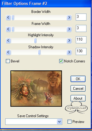 21. Effetti>Plugins>Bordermania / Frame #2, con i seguenti settaggi: