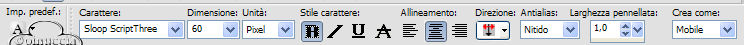 Attiva lo strumento Testo , scegli il font Sloop Script Three, così impostato: