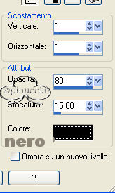 Effetti>Effetti 3D>Sfalsa ombra, con i seguenti settaggi, colore nero.