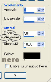 Effetti>Effetti 3D>sfalsa ombra, con i seguenti settaggi, colore nero.