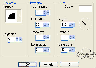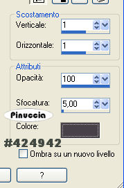 Effetti>Effetti 3D>Sfalsa ombra, con i seguenti settaggi, colore di primo piano.