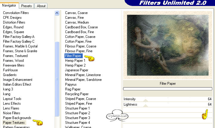Effetti>Plugins>Unlimited 2 - Paper Textures - Filterpaper, entrambi i valori a 64.