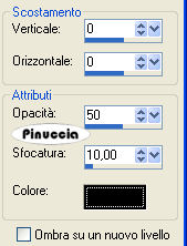 Effetti>Effetti 3D>Sfalsa ombra, con i seguenti settaggi, colore nero.