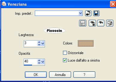 23. Effetti>Effetti di trama>Veneziana, con i seguenti settaggi (colore di sfondo):