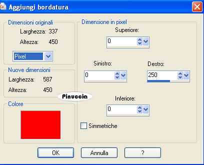 10. Immagine>Aggiungi bordatura, simmetriche non selezionato, con il colore rosso.
