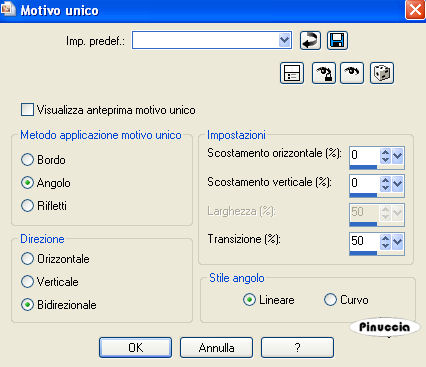 Effetti>Effetti di immagine>Motivo unico, con i seguenti settaggi: