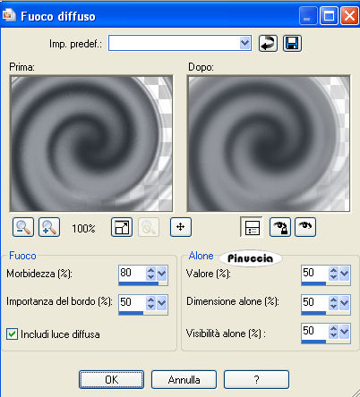 25. Regola>Morbidezza>Fuoco diffuso, con i settaggi precedenti.